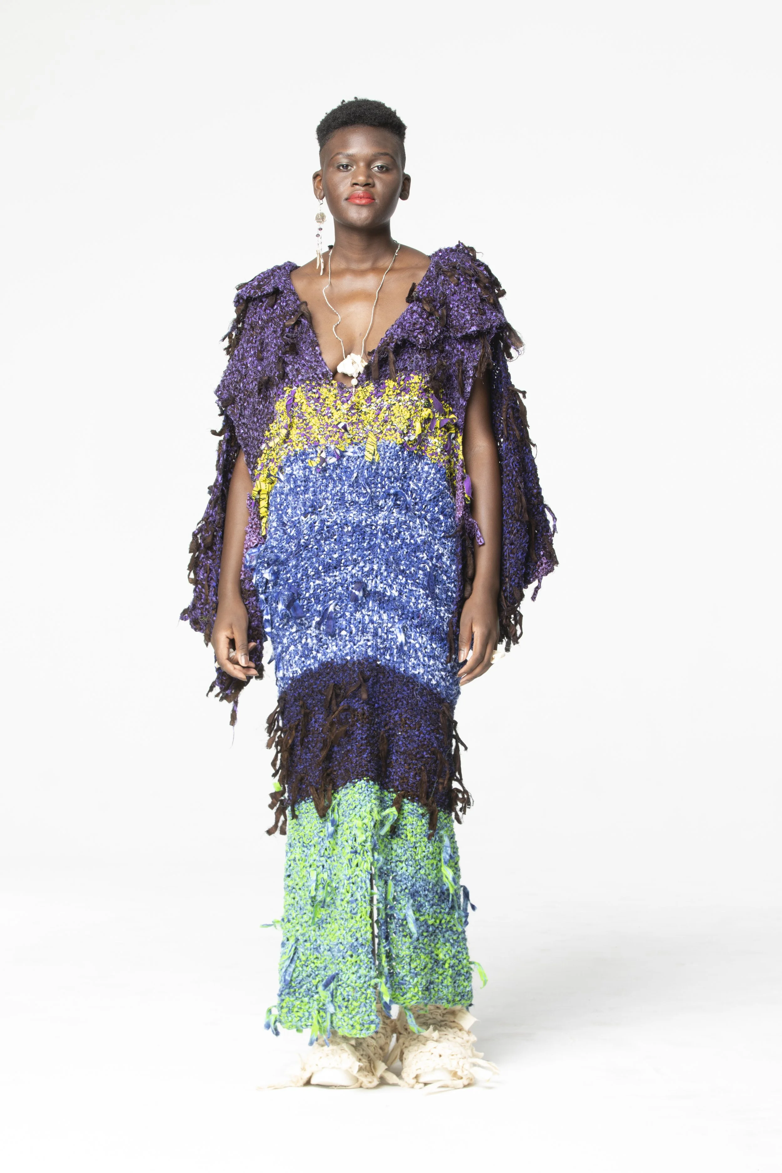 Sankofa is an exploration of textile, sustainability, and the transformative power of creating in community. Crafted using a rag knitting technique, the piece reflects Elise Mascia’s deep-rooted commitment to environmental care, cultural celebration, and her evolving artistic journey.